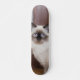 The skateboard has a specific design, depicting the image of a hairy cat of Ragdoll's race. A Ragdoll is a cat breed known for its soft, long coat, and for its calm, sociable temperament. In this case, the skateboard features a design that incorporates the distinctive appearance of a Ragdoll cat, with details that highlight its coat and facial features. This stylized and themed approach gives skateboarding a unique and personalized touch, merging the world of extreme sports with the aesthetic of a Ragdoll cat.