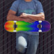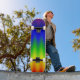 Almost appearing like twin flames, the rainbow design of this fabulous skateboard starts in the deep red end of the spectrum, flickering upward to the violet. Add a hot pop of color to your boarding experience!