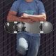 The skateboard has a specific design, representing wild wolves. The evoked scene is at night, with the presence of a moon in the sky. The combination of elements suggests a visually shocking image, where the silhouette of wild wolves on the skateboard stands out in the midst of night darkness, illuminated by moonlight. This design evokes a mysterious and wild atmosphere, creating a unique sensation for those watching the skateboard.