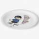 Skateboarder party plates featuring a skateboarding cartoon boy kicking up a skateboard. To personalize add text to create custom birthday plates.