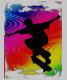 The sports action and energy of skateboarding athletes are captured in silhouettes of action figures demonstrating extreme tricks and stunts on their boards. Digital paintings and illustrations of these teens and young men include backgrounds of bright, vivid colors and splashes and bursts of light to highlight the action. They also show off in grungy and edgy street and skate park scenes where kids earn their street creds showing off their skills as skateboarders.