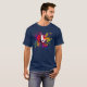 My 11 yo wore adult XL (5’7” 165#). The 8yo is small framed. She wore adult small and tied it in the back. Grandma wore adult large with long sleeve shirt underneath. Tall girl adult medium. Dark haired male adult large. Good quality dark Heather gray, Gildan brand shirt. -it was next up from basic choice and cost about $20 per shirt. Not too thick or thin. Washed and dried well, no major shrinkage. Not see-through. Can wear a bra under it fine. Screen print is just as shown and well done, front and back.