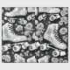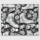 Classic roller skates, roses, black and white design.