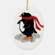 A penguin with a long red scarf ice skating on a keepsake ornament that's a great gift for anyone who loves ice skating and penguins!
