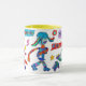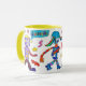 Cool! Woohoo! Awesome! These robot friends are having a blast skating the day away. This mug was designed by Nick Akeson and features three colorful robots on a yellow mug!