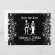 Gothic Skeleton Bride & Groom Couple Save the Date Postcards. Really cute skeletons featuring a groom and a bride, save the date text, and bride & grooms name & wedding date postcards. Complete with tophat bowtie, veil and heart!Great and very unique dave the date postcards for your Halloween Wedding, Goth or Theme Wedding!