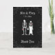 Skeleton Couple Thank You Card. This card is a great thank you for your wedding guests. A complete line of this theme is available in our store, wedding invites, rsvps and more with this skeleon couple on them! Completely Customizable with your details. www.oddlotpaperie.com