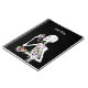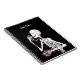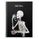 Notebook with my original artwork for Halloween a skeleton character eating candy.