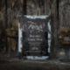 Elegant dark Halloween or goth wedding favors sign with a swirly white calligraphy script, a dark gray background and black skeletons.