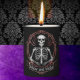 Create the perfect spooky ambiance with this hauntingly beautiful personalized skeleton votive candle holder! Featuring an intricately detailed anatomical skeleton illustration framed by an ornate Victorian-style copper border on a sleek black background, this gothic candle holder can be customized with your names or message on the decorative banner below. The elegant yet eerie design makes it perfect for Halloween celebrations, gothic weddings, Day of the Dead festivities, or year-round decor for those who love dark aesthetic vibes. When lit, the candle casts an enchanting glow that highlights the detailed skeleton artwork. Makes a unique gift for couples, gothic enthusiasts, anatomy lovers, or anyone who appreciates macabre elegance. Perfect for creating atmospheric lighting at Halloween parties, gothic themed events, or adding dark romance to your home decor!