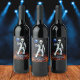 Halloween disco party bottle labels personalized with a message, family name, and year. This design features a dancing skeleton in a retro white disco suit with a disco ball, electrified by bolts of lightning, on a dancing floor. Perfect for a spooky event, this unique haunted bash design sets the tone for a night of costumes, music, and unforgettable moves.