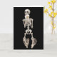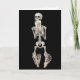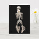 Skeleton holding a king and queen of hearts playing cards in bony fingers for wedding anniversary.