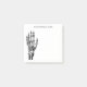 Cute post it notes with a vintage skeleton hand in black on them. Personalize them with your name.