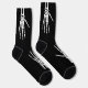 Spooky skeleton hand silhouettes on a black background color. There's three of them on each sock, two on the top and one on top of the foot. Fun for Halloween!