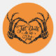 Stylish Halloween sticker featuring skeleton hands forming heart shape.