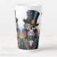 gure adorned in a richly detailed black top hat with golden accents. The skeleton, showcasing vampire fangs, wears an opulent Victorian jacket with intricate golden embellishments, complemented by a deep red vest underneath.