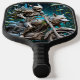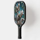 skeleton on a chopper mounted with a wolf head pickleball paddle