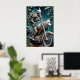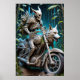 The white skeleton revved up his big fancy chopper, the roar of the engine echoing through the dark green forest. His bone napsak, adorned with delicate flowers, hung from his back as he took off down the winding trail thoug the bush. The full moon guided his way as he rode through the night, his wolf skull helmet protecting his bony head. The wind whipped through his bones as he speeds past trees and glided over hills. He was a sight to behold, this skeleton on a chopper, his flowers and bones creating an unusual contrast. But to him, it was just another night ride through the mysterious woods.Finally, after a long and arduous quest, the skeleton arrived at a place where souls converged. Surrounded by shimmering stars and an ethereal mist, he realized his purpose: to guide lost souls to the realm of peace.