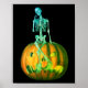 Funny skeleton sitting on a mean looking Jack O Lantern pumpkin against a black background. Design by Susan. This image is available on many cards and products in my main store Smilin' Eyes Treasures. Visit my Profile page to find links to all of my stores.