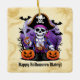 Add a swashbuckling touch to your spooky season décor with this Pirate Halloween Ornament! Featuring a grinning skeleton pirate with jack-o’-lanterns, bats, and a vintage treasure map background, this square ornament is the perfect blend of spooky and seafaring. The bold message “Happy Halloween Matey!” makes it a standout piece for pirate lovers, Halloween collectors, or themed party hosts. Crafted from durable materials and printed on both sides, this ornament is perfect for hanging on Halloween trees, using as party favors, gift tags, or even adding flair to wreaths and garlands. The text is editable, so you can personalize it with a family name, year, or custom message. Pair it with matching items from the Pirate Halloween Collection for a festive, frightfully fun theme that’s sure to shiver yer timbers! Edit text from the product page or to change font style or color, use the design tool.
