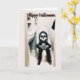 Add a quirky twist to your Halloween greetings with this funny and unexpected card! The cover features a skeleton dressed in a classic black robe, casually sitting on a toilet in a tiled bathroom. With a mischievous grin and a relaxed posture, this little skeleton is taking a break from all the Halloween chaos. The playful "Happy Halloween" message above adds to the lighthearted tone, making it perfect for anyone with a good sense of humor.