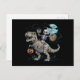 Skeleton Riding Dinosaur T rex Halloween Pumpkin Postcard