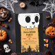 Summon your guests to an unforgettable bash with this spooky Halloween party invitation! Perfect for a haunted house rave, costume party extravaganza, or kid friendly spooky soiree, this design captures the eerie magic of the season featuring a big skeleton skull and a haunted graveyard with fluttering bats at the bottom.