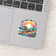 Ride the waves of nostalgia with our retro-inspired sticker featuring a skeleton catching waves on a surfboard against a vibrant sunset backdrop. Perfect for adding a cool, vintage vibe to your gear!