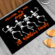 This fun doormat features four skeletons on a black background with orange text that reads: Welcome to our crypt. Easily personalize this whimsically spooky mat with a custom name, other text or remove it completely.
