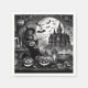 A hauntingly spooky black and white illustration of a skeleton witch with her pumpkins.