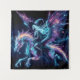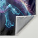 a skeletal witch riding a dragon fantasy Tapestry . The style blends elements of neon art and celestial themes, creating a dynamic and visually striking composition that emphasizes both the mystical and the surreal. Both the witch and dragon have sugar skull elements in them making this truly a unique piece. Add a spooky or funny saying to customize the tapestry to make it your own. This is perfect for Halloween or any time of the year.