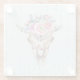 Watercolor skeleton with flowers and horn over light blue background. Customizable glass coaster template