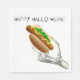 Humorous Halloween party paper napkins, with graphics of a skeleton's hand holding a hotdog. Black text reads Happy Hallo-wienie and can be personalized to read what you want.
