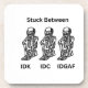 Skeletons Stuck Between IDK, IDC, IDGAF on a Beverage Coaster