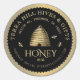 Vintage skep with bees and fancy border. Common honey net weight conversions: 8oz (227g), 12oz (340g), 16oz (454g), 32oz (907g), 5lb (2.27kg).