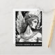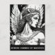 A black and white postcard featuring Athena, the Greek goddess of wisdom, warfare, and crafts. The postcard features a detailed line art drawing of Athena, depicted as a fierce warrior in a minimalistic black-and-white style.