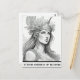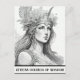 A black and white postcard featuring Athena, the Greek goddess of wisdom, war, and crafts. The postcard features a detailed line art drawing of Athena, depicted as a fierce warrior in a minimalistic black-and-white style.