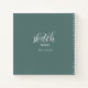 Sketch Book with your name notebook. White script and plain text on a green grey background.