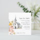 Announce your upcoming wedding with this charming hand-drawn 'Save the Date' card. Featuring a beautiful watercolor illustration of a quaint church surrounded by delicate floral blooms in soft peach, coral, and yellow hues, this design evokes a sense of timeless romance and rustic elegance. The gentle sketch-like quality and artistic watercolor splashes create a truly unique and memorable piece. It's the perfect way to share your special date with loved ones, setting the tone for a beautiful wedding celebration. Let this artistic design be the first glimpse into your magical day.