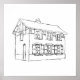 Drawing of an old country house. Sketched using a graphics tablet. This house is in France, it has wood details on the walls and wooden shutters on the windows. In black and white.
