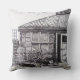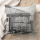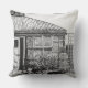 The original little drawing on this throw pillow is a stylized sketch of a little black dog (seen in the lower right hand corner) laying amongst the plants and pots of the garden, behind the trellis fencing is a water butt and justtothe left you can see the open door tothe conservitory. This drawing was done in the moment and that's what gives it the original sketchy natural style.