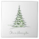Sketch Pine Christmas Tree Minimal Script Name Ceramic Tile