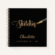A chic black background. With the text: Sketches and decorated with a paint brush. Personalize and add a name and text (or delete)