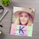 A holographic background, pink,purple, mint. Personalize and add your own photo, a name, monogram letter and a year. The name is written with a large modern hand lettered style script with swashes. For school, work as a sketchbook, diary and journaling. To keep the swashes only delete the sample name, leave the spaces or emoji's in front and after the name