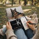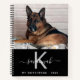 A chic black background. Personalize and add your own photo, a name, monogram letter and a year. The name is written in white with a large modern hand lettered style script with swashes. For school, work as a sketchbook, diary and journaling. To keep the swashes only delete the sample name, leave the spaces or emoji's in front and after the name