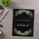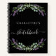 Lavender flowers and eucalyptus greenery. Add your name, and text. Black background, white text.