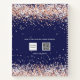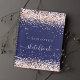 Navy blue background. Rose gold, blush confetti. The title: sketchbook written with a girly modern hand lettered style script with swashes. White colored letters. A notebook for drawings, sketching, notes and school homework.