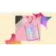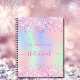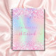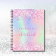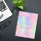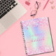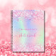 A trendy holographic colored background with unicorn and rainbow pastel colors in pink, purple, mint green. Decorated with confetti in pink. Personalize and add a name, The title: sketchbook written with a girly modern hand lettered style script with swashes. To keep the swashes only delete the sample name, leave the spaces or emoji's in front and after the name.