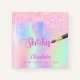 A trendy holographic colored background with unicorn and rainbow pastel colors in pink, purple, rose gold, mint green. Decorated with faux glitter drips in rose gold, pink and purple. Personalize and add a name, The title: sketchbook written with a girly modern hand lettered style script with swashes and a brush. Pink colored letters. A notebook for drawings, sketching, notes and school homework.