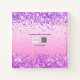 A pink gradient background. Decorated with pink confetti.. Personalize and add a name, The title: sketchbook written with a girly modern hand lettered style script with swashes and a brush. Purple colored letters. A notebook for drawings, sketching, notes and school homework.